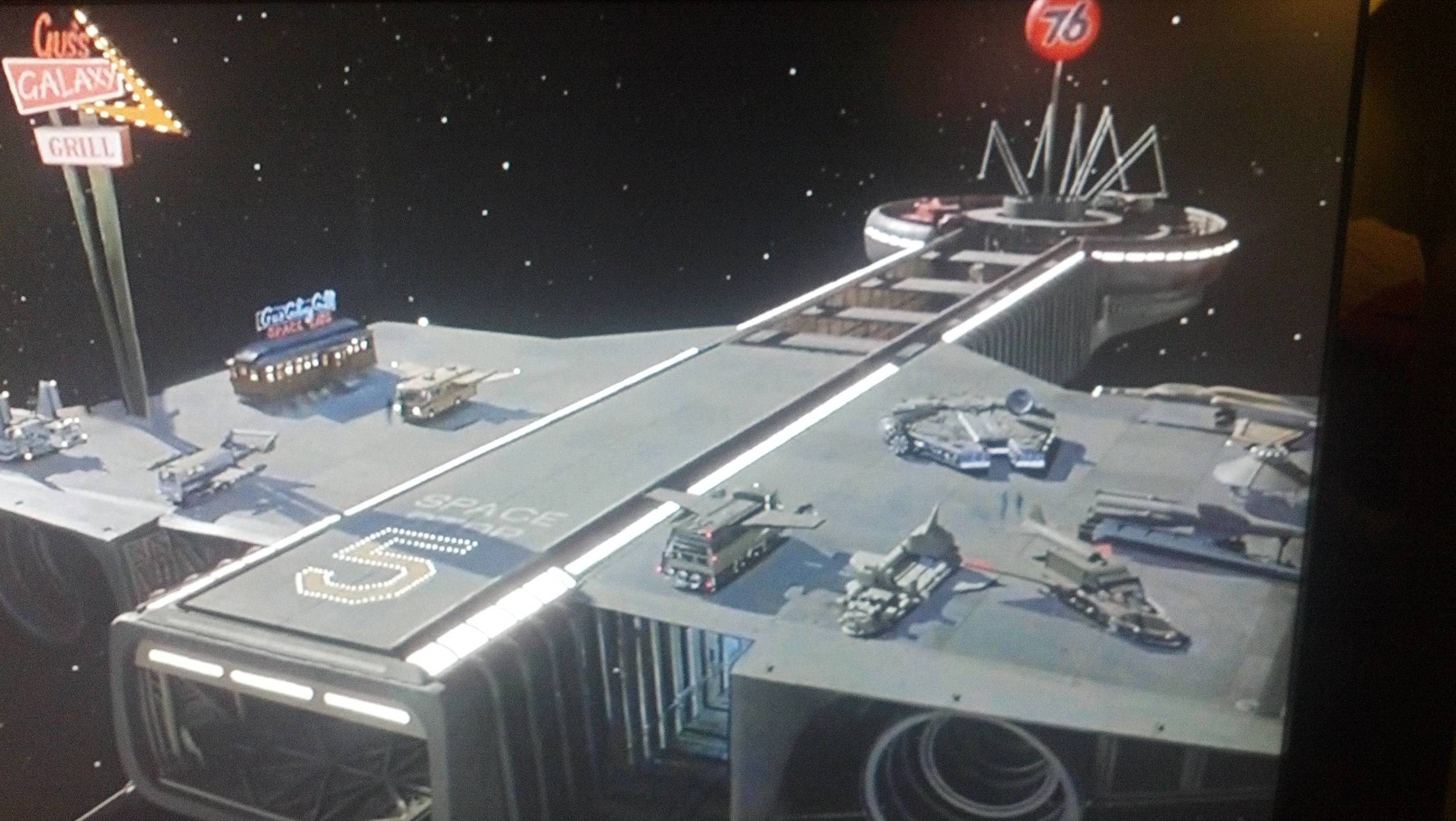 - The Millennium Falcon from Star Wars: A New Hope appears in the film during a shot of the Space Diner. It’s parked with several other space vehicles.