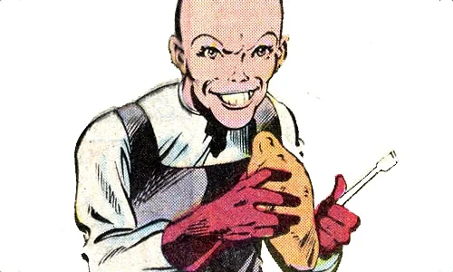 This crazy, creepy-looking guy didn't have any powers, but he did find some radioactive clay that allowed him to create voodoo doll-type puppets of people that could control them. How convenient for a puppeteer! Of course he has to coat the puppets with lead paint in order to protect himself from the radiation. He's not able to control anything mindless though.