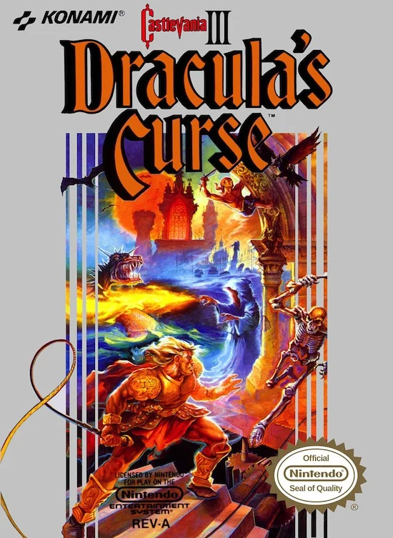 I recently posted a great piece of art that featured a little kid blowing into an original Nintendo Entertainment System game cartridge. It got me thinking about all the games I used to play back in the day, and I started looking up some old stuff to reminisce on those good old days. As I was skimming through some stuff, a lot of video game cartridge images were popping up and I noticed there was some really cool art that was created for some of these games. One of the other things I noticed is that the bad art outweighed the good, so I thought I'd pluck out a few of the coolest NES game cartridge illustrations that I came across and do a little post for them. Castlevania sure seemed to know what they were doing when it came to the art as the first three games top the list.