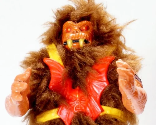This is the first He-Man figure that didn't prominently feature chest muscles and a crotch because they covered him in a hair. What in the hell was Mattel thinking when they made this? It reminds me of a Tribble from Star Trek. I'm sure they included the cross-bow weapon in hopes it would sell.