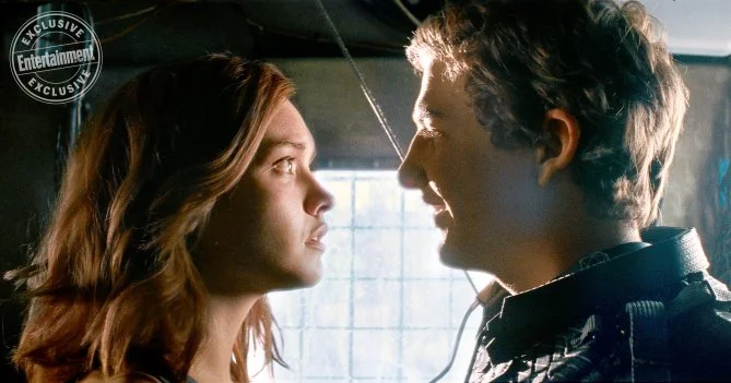 Here we see two of the heroes of Ready Player One in the flesh: Samantha Cook (played by Olivia Cooke) and Wade Watts (played by Tye Sheridan.) He looks remarkably like a young, beardless Spielberg whenever we see him in real life, and has a genial, geeky personality. She's a lionhearted revolutionary who knows that control of the OASIS is about more than fun and games.