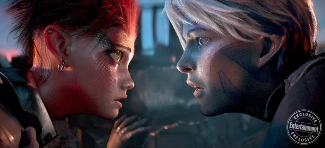 Here are their avatars in the OASIS: Samantha's phoenix-haired Art3mis and Wade's cooler, blue-streaked Parzival, with nary a hint of his real-life dorkiness. She retains one element from real life that another person might eliminate: the red streak of the birthmark over her right eye.