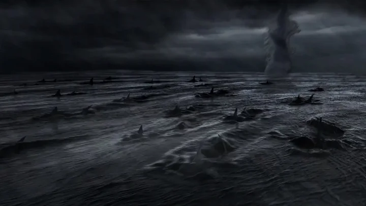 When a freak hurricane swamps Los Angeles, thousands of sharks terrorize the waterlogged populace. And when the high-speed winds form tornadoes in the desert, nature’s deadliest killer rules water, land, and air.
