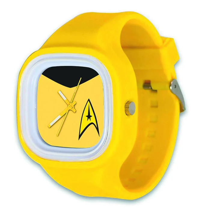 Confidently sit in the Captain's chair with this piece of retro flair from Unground Toys. The yellow silicon strap matches the command division emblem of the U.S.S. Enterprise.