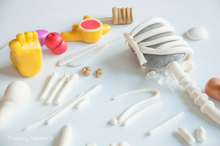I started a few weeks before I was going to bake making all the modeling paste bones. I wanted to make them far enough ahead of time so they could dry properly and be able to hold up under the weight of his muscles and other body parts. I used as few tooth picks as possible but did use a few to hold the ribs together and onto the body. (read more)