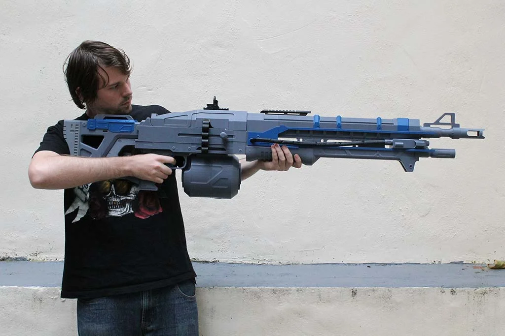 I really love what 3D printers are capable of doing these days, especially in the geek world. People are making all kinds of cool toys to play around with, like these weapons from the hit video game Destiny. The Thunderlord Exotic Heavy Machine Gun comes from Kirby Downey, and the Conduit F3 Legendary Fusion Rifle is by Elliott Viles.