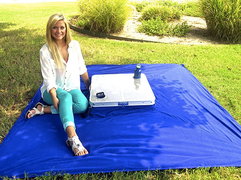 If you are camping out, try this blanket with a built in table. You’re not going to actually sleep all night, so why not bring a portable surface for some tabletop gaming? [Think Geek]