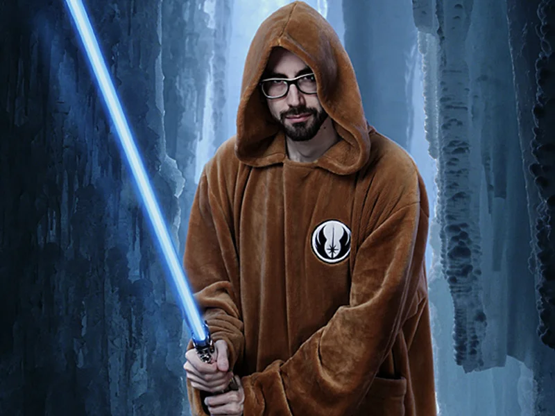 If you celebrate Star Wars day alone, watching all six of the movies (plus the weird Ewok TV movies), and eating a ton of snack foods, you’re going to want this blanket. Look like a Jedi while you sit around stuffing your gob like Jabba the Hutt. [Think Geek]