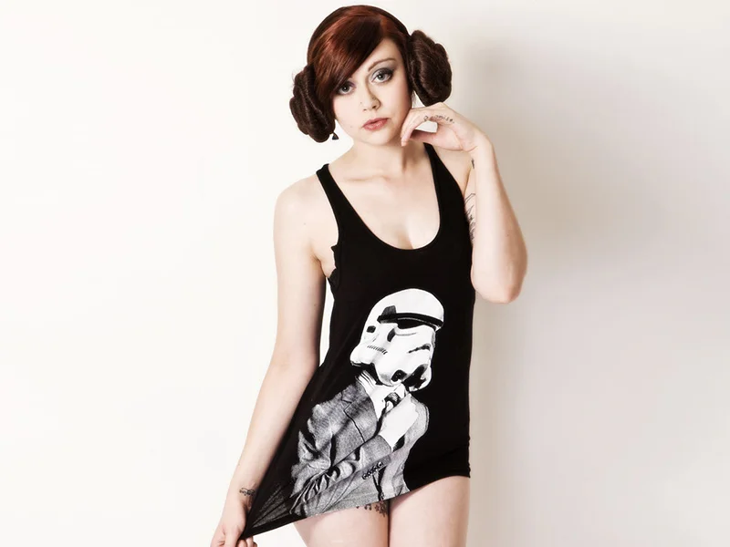 Maybe you want to show your Star Wars love in a hip, ironic way. Maybe you want it to be ambiguously political, too. Like, the real drones are the people who wear suits to work and buy and trade our futures, or something. I don’t know, maybe that Stormtrooper just wants to look fly. (There is a men’s version of the shirt here.) [Etsy]