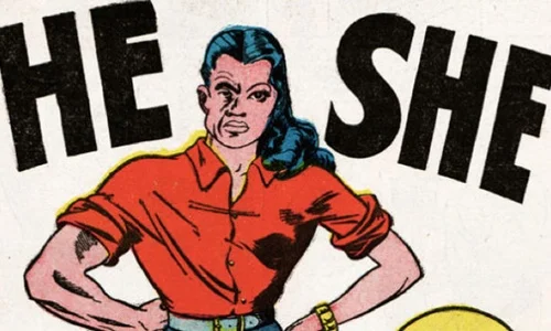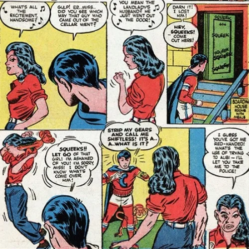 All I can say is...wow! Here we have a half-man, half-woman villain who who uses her "power" (?) of being both a boy and girl to commit devious crimes. Like this one time, He-She tricked a woman into marrying him/her to de-fraud her of money!