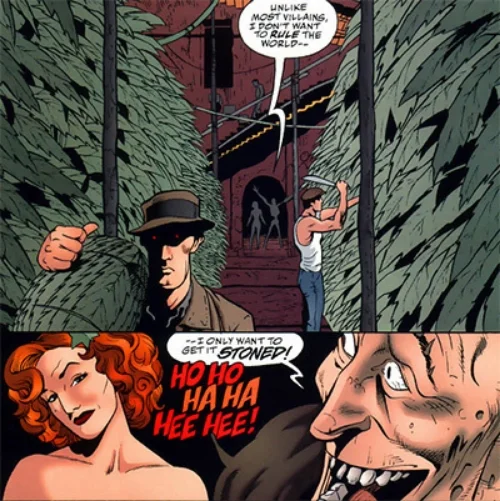 The character was eventually revamped in a Batman storyline in which his head is decapitated. A group of scientists manage to keep his head alive, and the first thing he comes in contact with is marijuana. That marijuana regenerates his body, so his body is now literally made of cannabis. He’s basically a big pot plant with a human old man head.