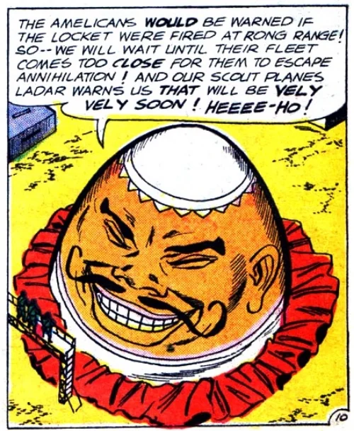 I don’t know what DC Comics was smoking when they created Egg Fu in 1965. Actually, scratch that, I do know what they were smoking. Egg Fu is a super evil genius and former communist agent that pretty much embodies every Asian stereotype. He would speak in broken "Engrish" like Charlie Chan, use his mustaches as whips when he fought, and for some reason he was so freakin’ huge!