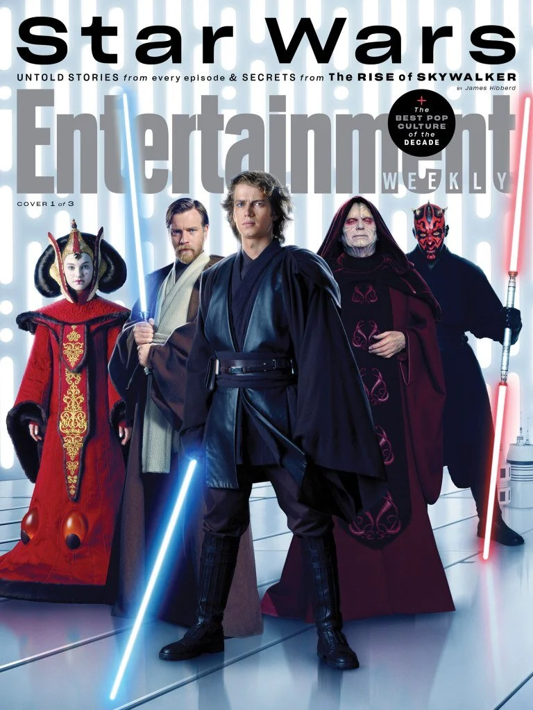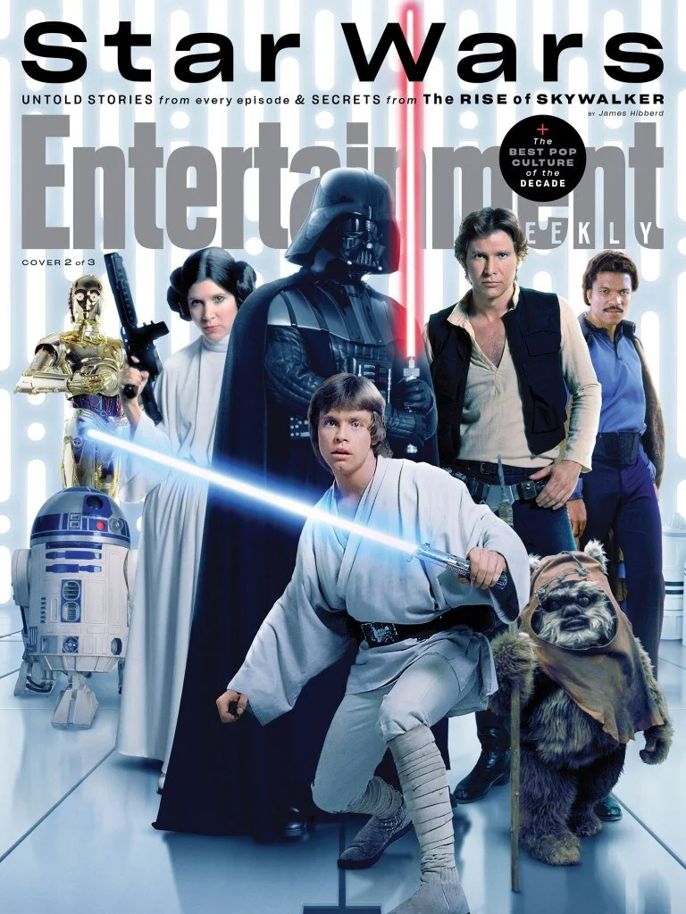 Below you’ll find three EW covers, and each pays tribute to one of the three Star Wars trilogies that have been made. The original trilogy, the prequel trilogy, and the current trilogy that is about to come to an end.