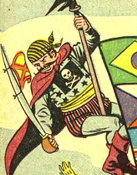Background: It would seem that you just weren't a superhero in the late 40's unless you battled a pirate at one point.. Aquaman battled Black Jack, and Batman managed to find Black Beard and Psycho Pirate living in Gotham, so it likely came as no surprise to Oliver when an urban swashbuckler found his way to Starling City. In fact, Oliver would go on to face 4 other pirates throughout his career, but this one was unlike the rest. He had a sword, a bandana, and a devilishly dapper mustache. Unfortunately, his name wasn't the Crimson Captain or Davy Jones. His name? The Flag. He was The Flag who did flag based crimes.