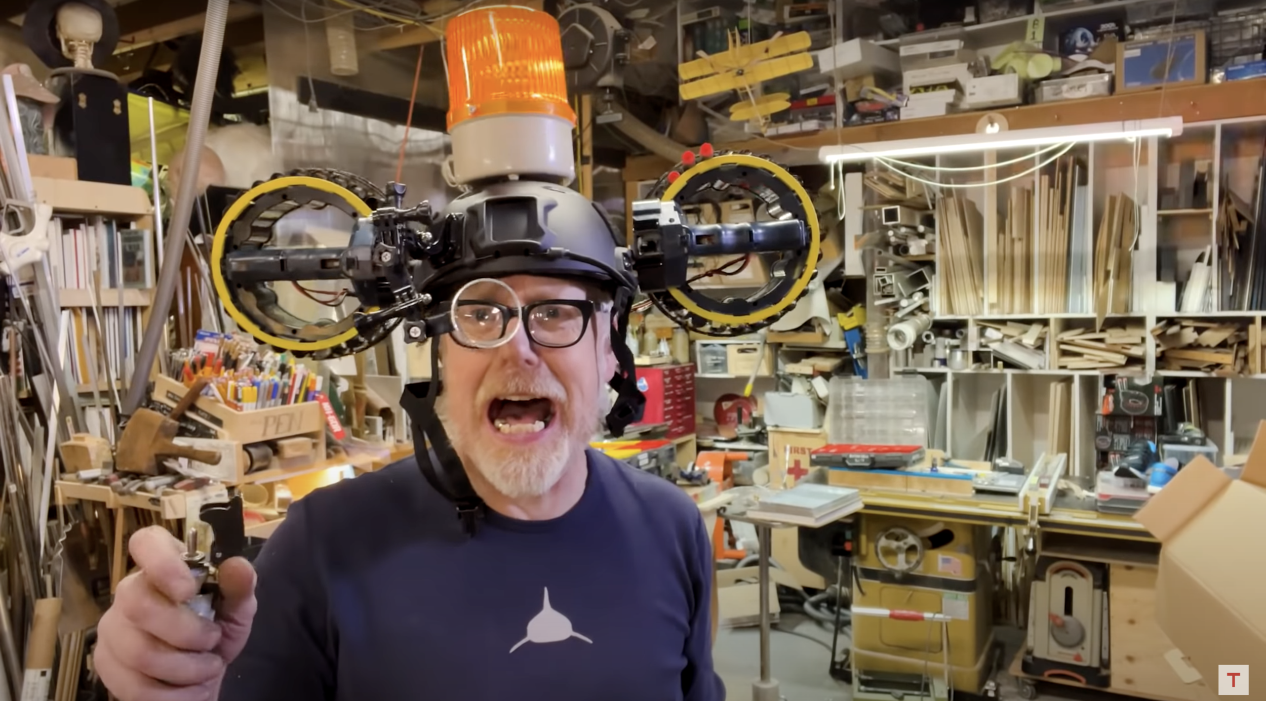 Adam Savage Builds a Bonkers Head Mounted Dart Blaster, Check it Out!