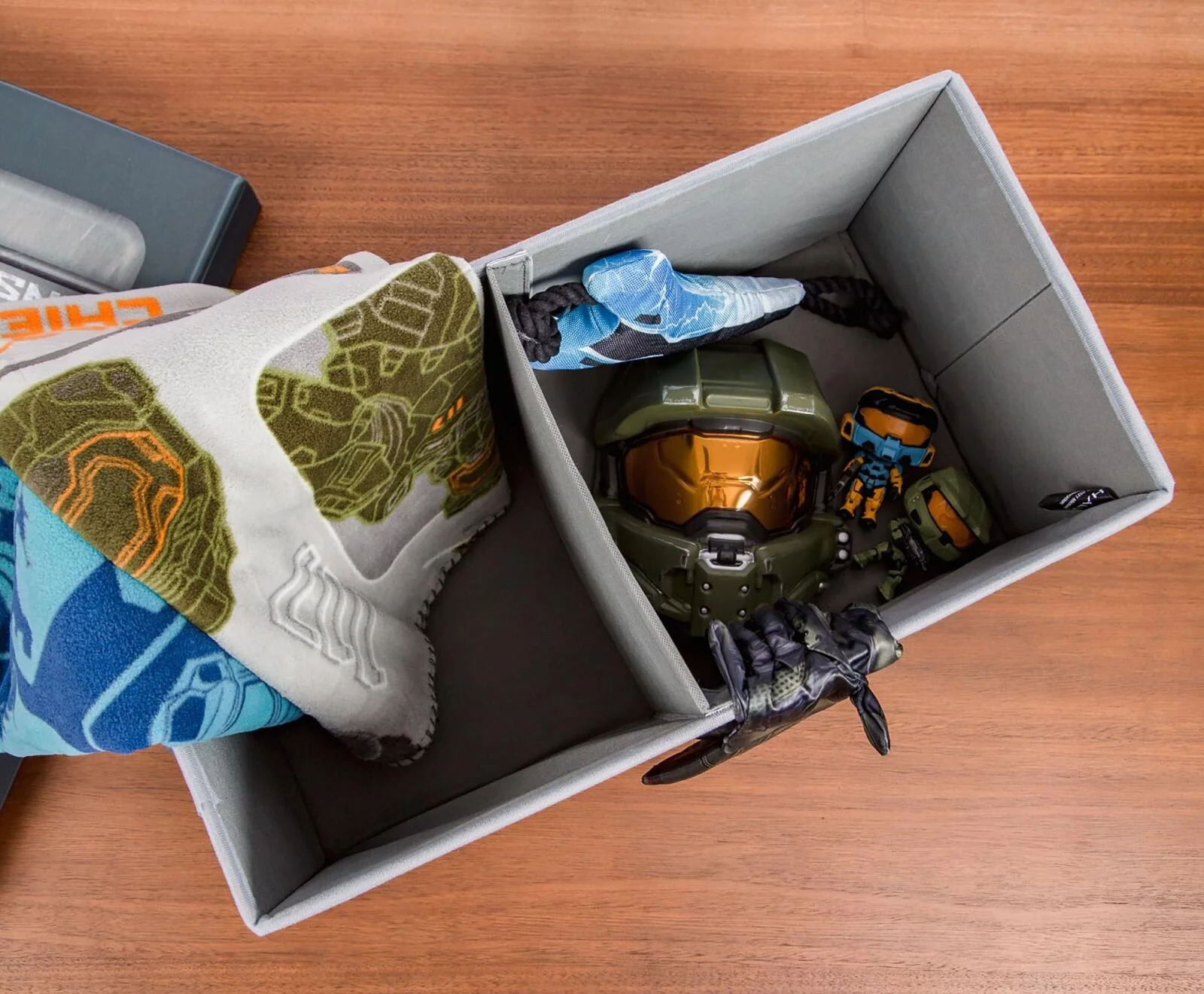 Halo fans can now geek out their homes a little more. Toynk (affiliate link) is now offering Halo stoneware for eating meals from as well as a foldable storage bin designed to look like a UNSC footlocker. The stoneware comes in an 8-piece set with 2 dinner plates, 2 salad plates, 2 soup bowls, and 2 mugs to dine with before teaming up with your player 2 in the campaign co-op. The dishes are microwave and dishwasher safe and cost $69.99.