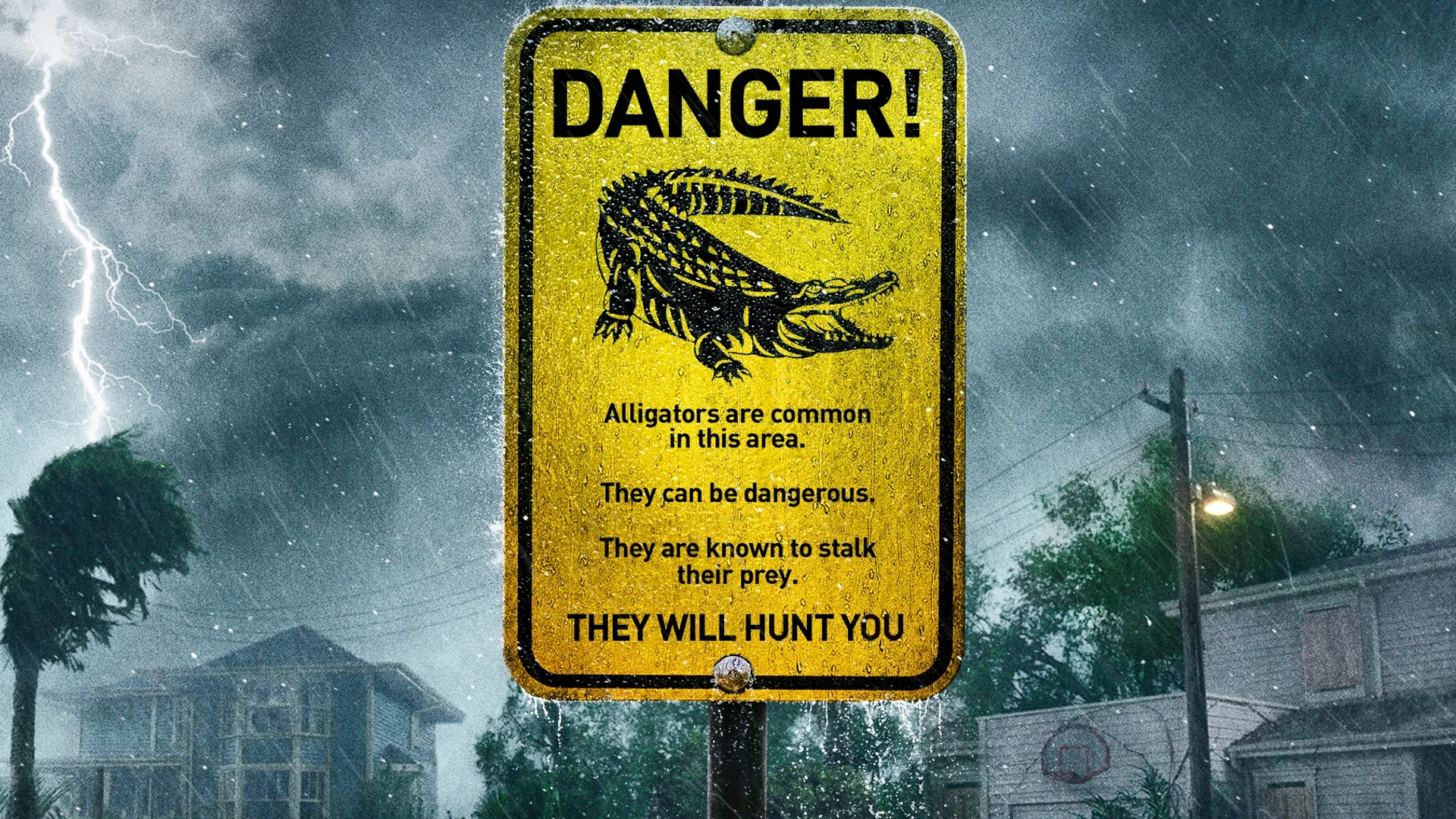 When a massive hurricane hits her Florida hometown, Haley (Kaya Scodelario) ignores evacuation orders to search for her missing father (Barry Pepper). Finding him gravely injured in the crawl space of their family home, the two become trapped by quickly encroaching floodwaters. As time runs out to escape the strengthening storm, Haley and her father discover that the rising water level is the least of their fears.