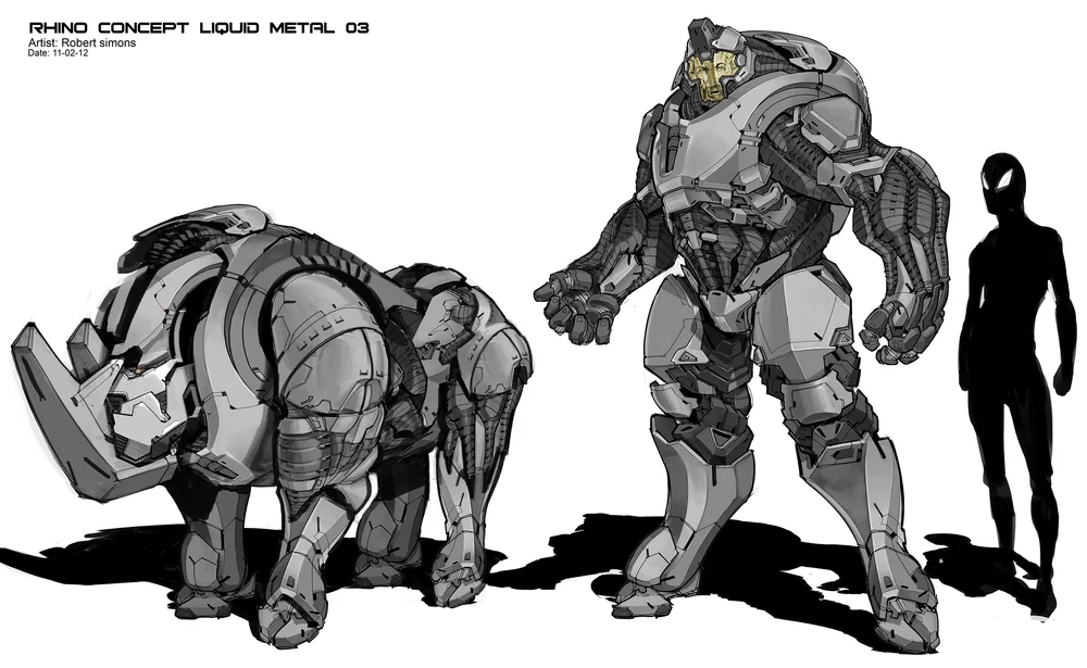 When talking about the Rhino suit he says it "kept changing to alterations in the script. This is common in concept for film." When talking about Green Goblin and his rider he explained, "It was a more complex order. The Glider had to move in certain ways, limiting what we could do with it. The Rhino suit had a bit more freedom to try new things."