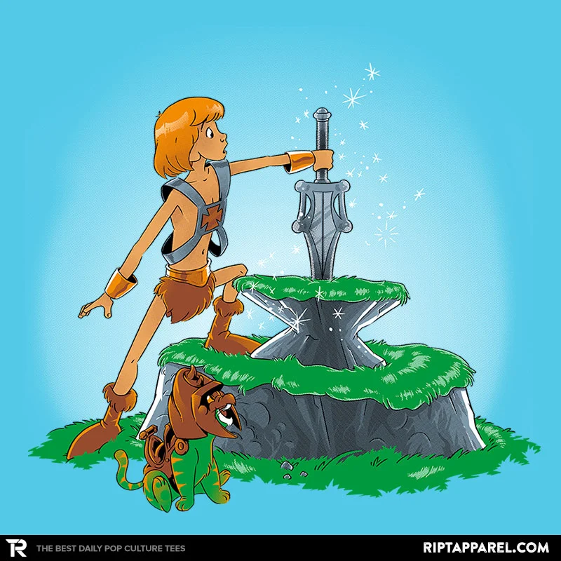 Check out this awesome mashup illustration that combines the badassery of He-Man and the Masters of the Universe with the cuteness of Disney's The Sword in the Stone. It was created by AtomicRocket for Ript Apparel, and it's called "Power Sword and the Stone."