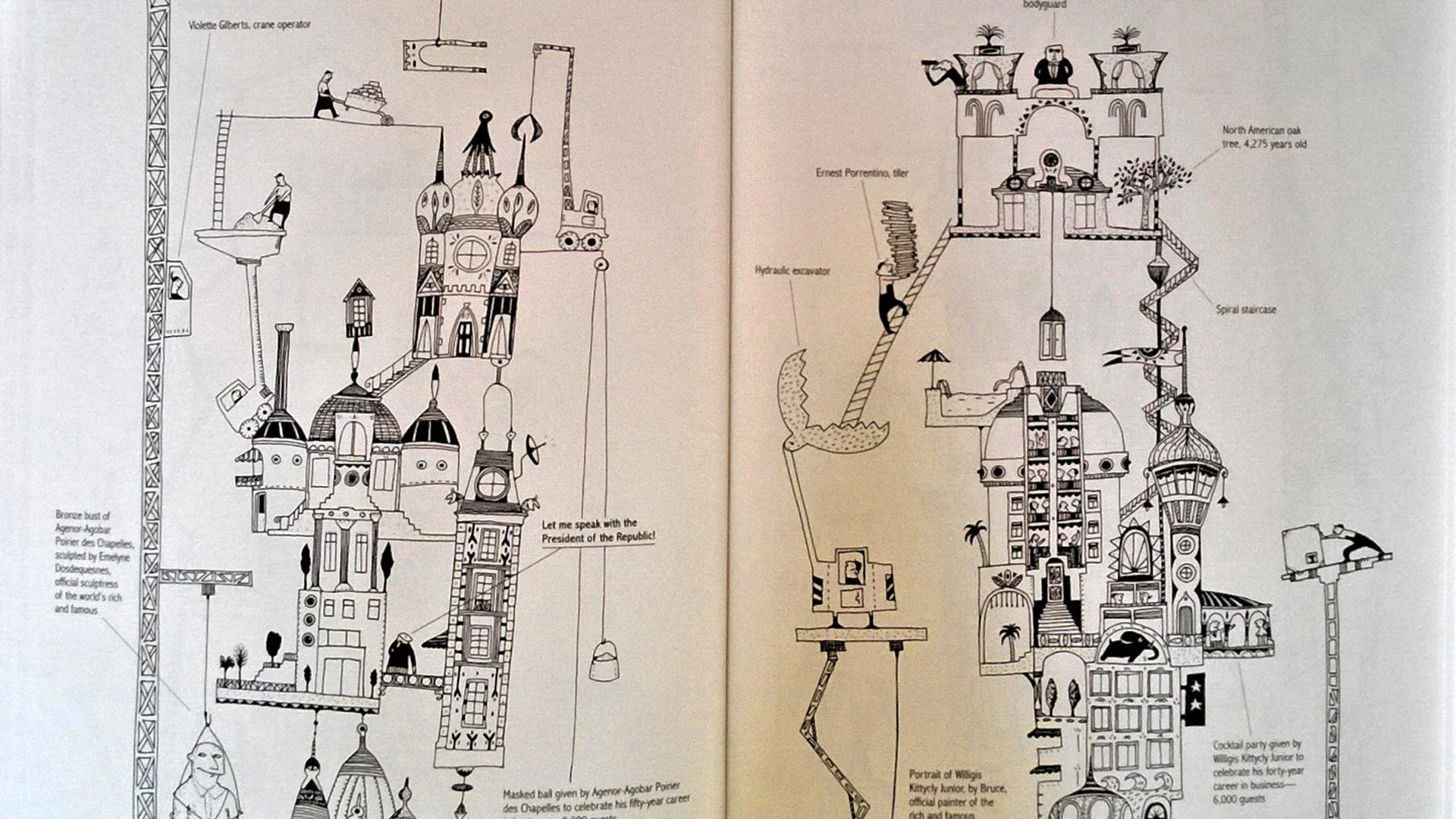 In this charming illustrated tale, two competing neighbors begin embellishing their houses, only to find themselves caught up in a race to build the tallest, most decadent skyscraper featuring solid gold doors, diamond-encrusted pillars, grand ballrooms, expensive paintings, live tigers, and indoor swimming pools—with consequences inevitable, and not. Kids will love spotting the funny details hidden in this witty take on an age-old moral, while their parents—particularly any who've ever undertaken a remodel—will chuckle with recognition.