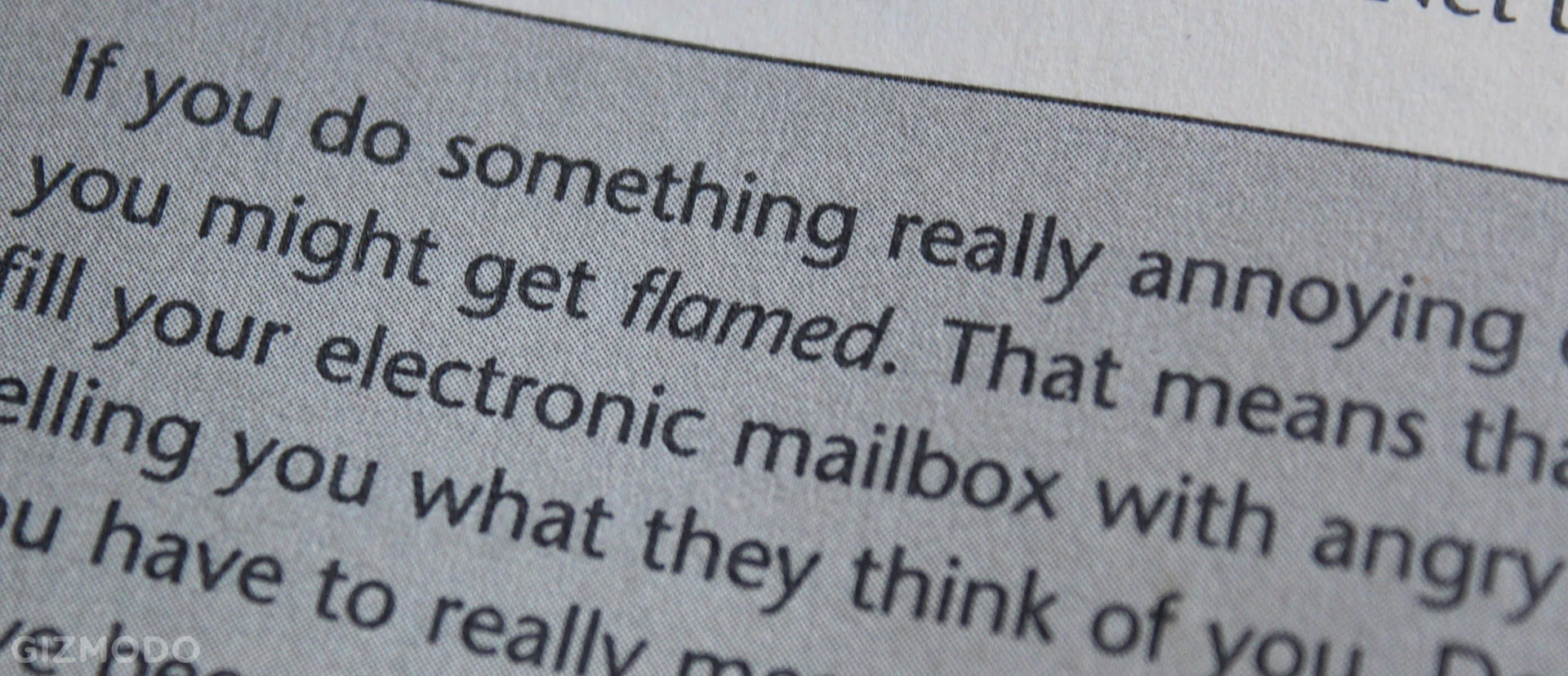 “'Don’t worry,' the books tells me. 'You have to really mess up to get flamed.' Really, all you have to do to get into a flame war is mildly disagree with someone."