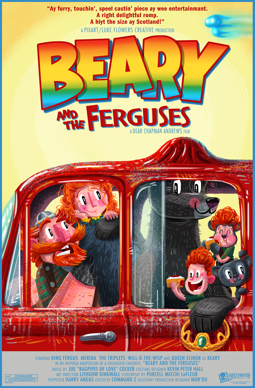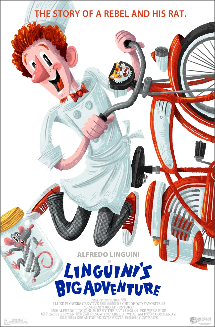 Artist Luke Flowers created this wonderfully fun series of art that mashes Pixar movies together with other classic films. These art mashups include Monsters Inc. with Bill and Ted's Excellent Adventure; Up with The Karate Kid; Ratatouille with Pee Wee's Big Adventure; Brave with Harry and the Henderson's; and Wall-E with E.T. The style of the art is great, and I love the humor that it offers. I hope you enjoy the set.