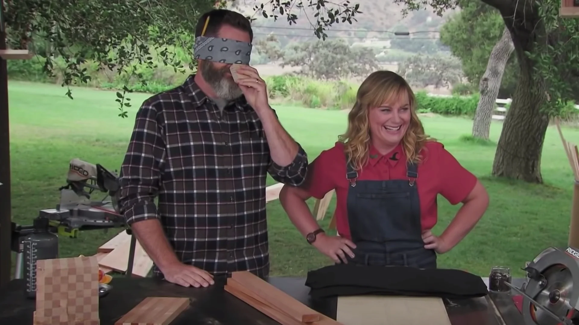 Amy Poehler Hilariously Challenges Nick Offerman to Identify Different Types of Wood Using His Sense of Smell