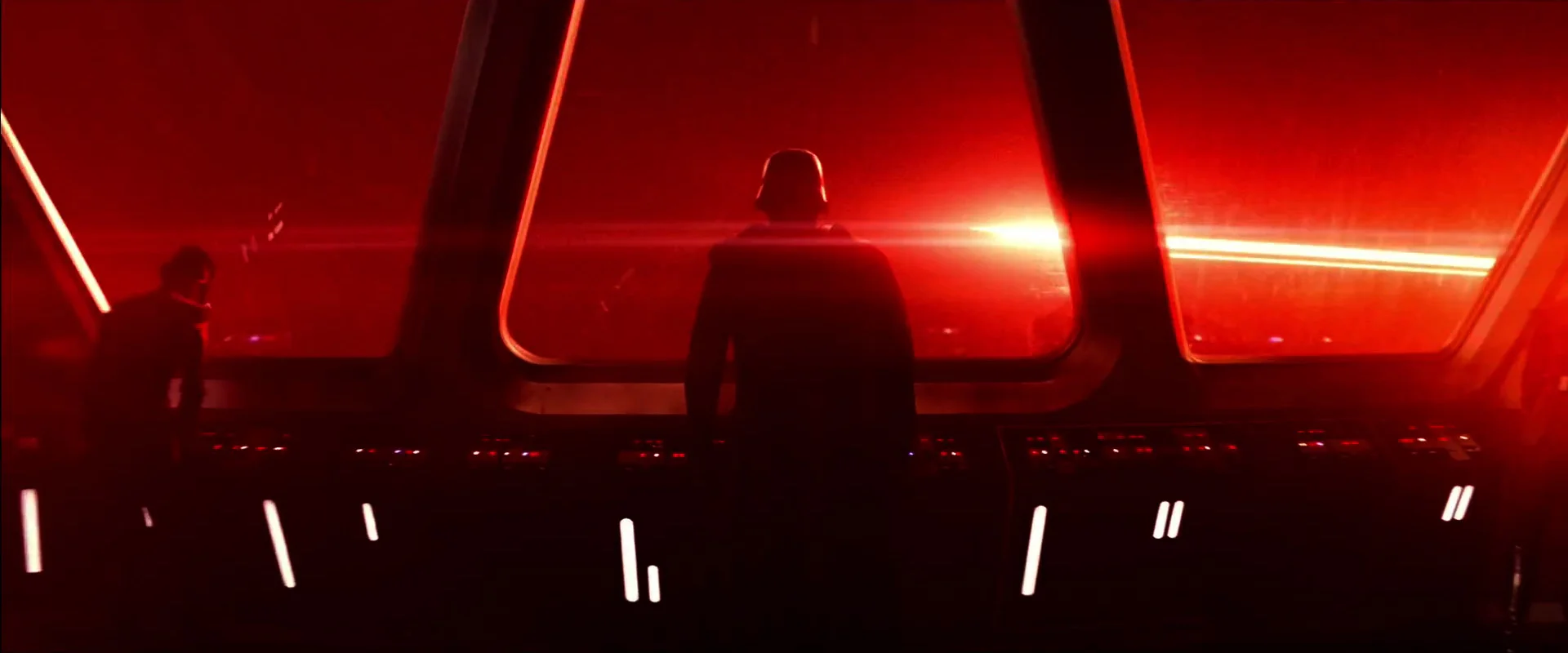 Next we get a shot of Kylo Ren standing on what looks like the bridge of a Star Destroyer overlooking something. I honestly have no idea what it could be.