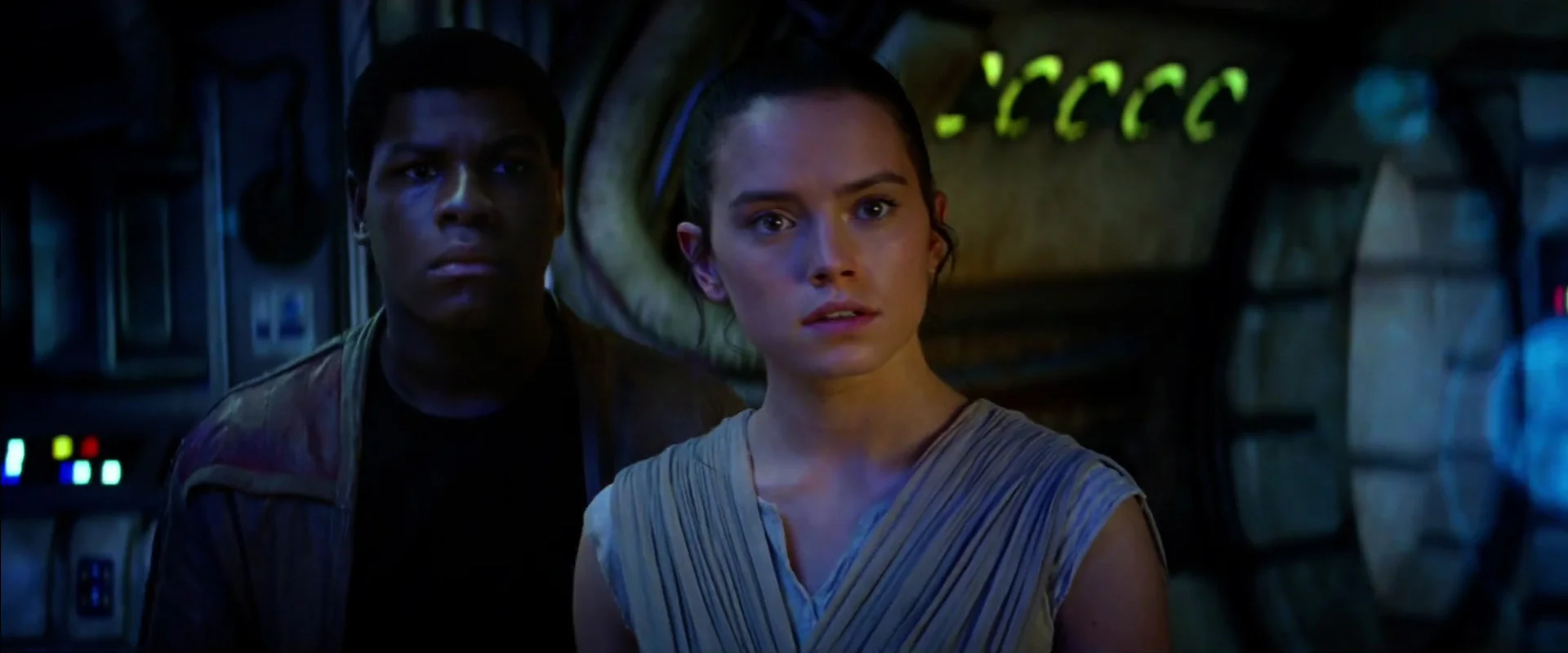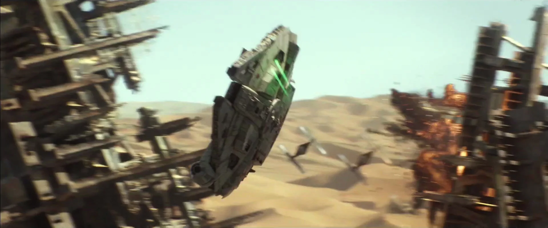Now in a previous trailer we were treated to Han telling Chewie they were home, and it appears they were on board the Falcon. If it's on Jakku at the beginning of the movie, this could mean that Han and Chewie don't actually possess the legendary ship at the start of the film. Maybe Rey and Finn get it from its current owner and return it to them. This does leave us knowing that Greg Grunberg's character (who has yet to be named) might own the ship at the beginning of the film, but his fate is still up in the air.