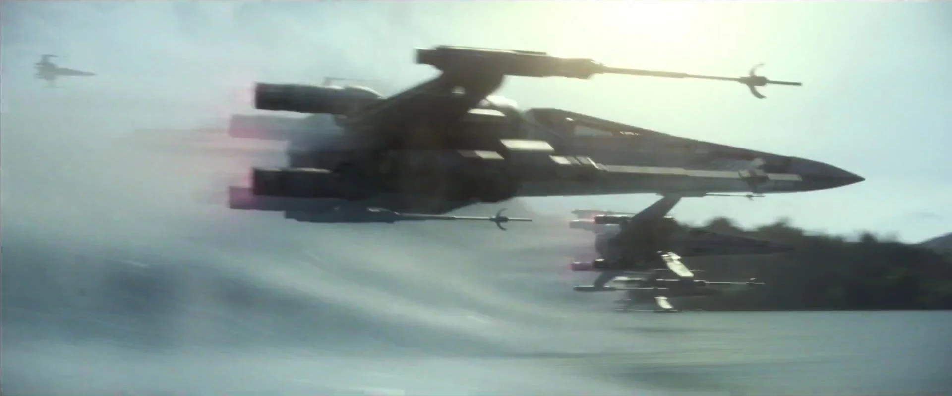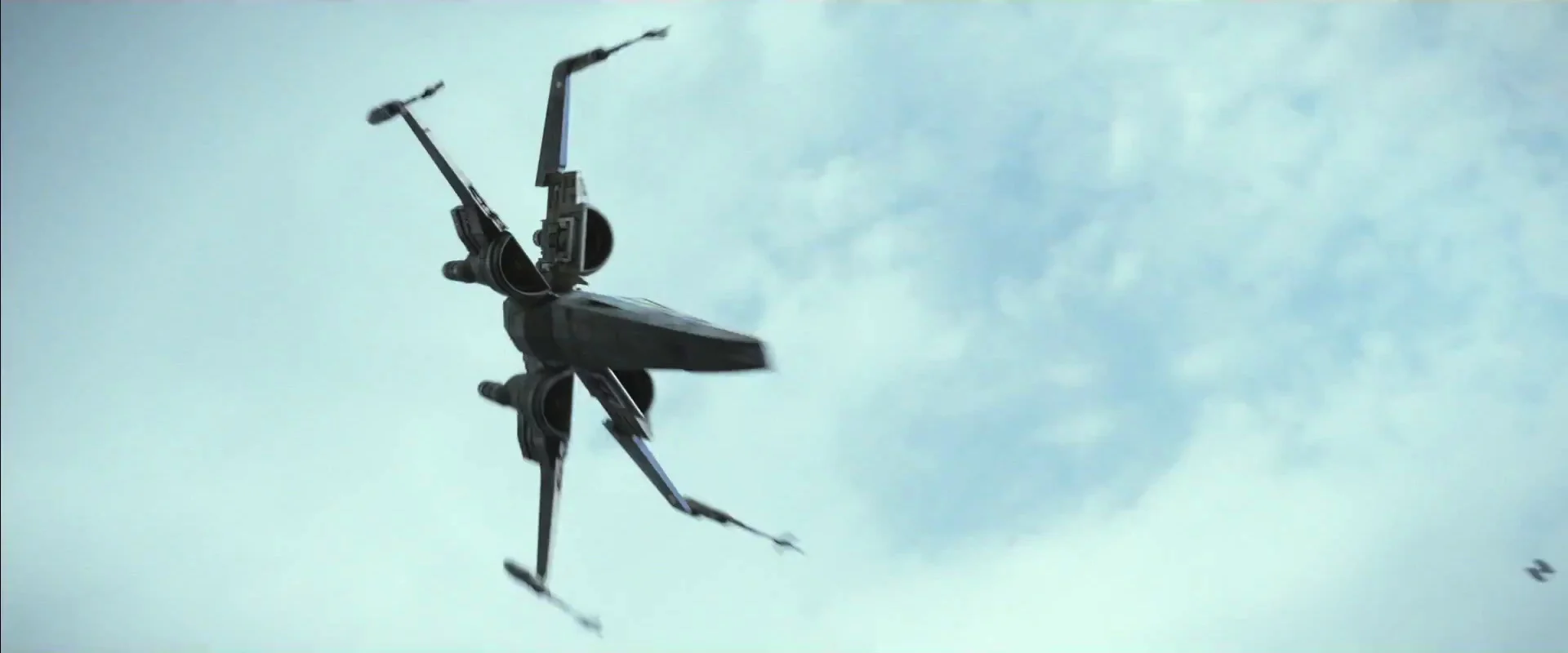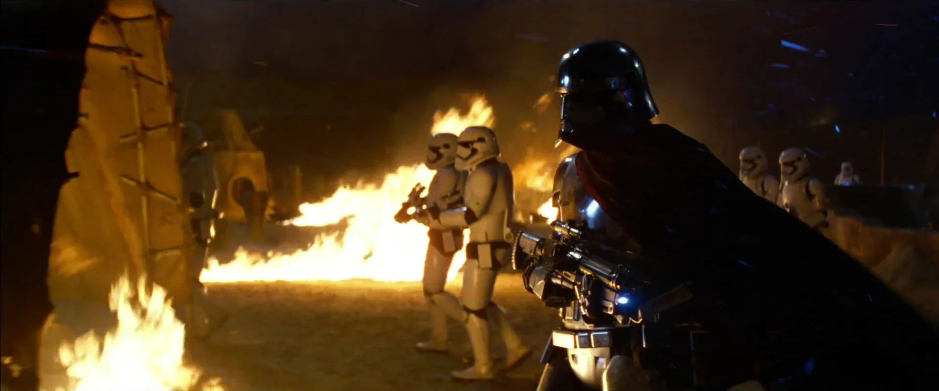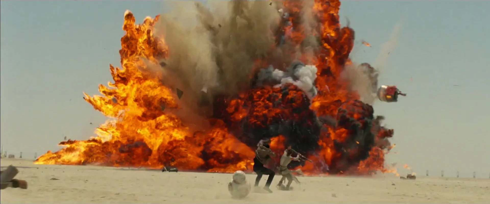 We're treated to several shots of X-wings, stormtroopers, dogfights, and the like. You know, your typical Star Wars goodness. We get a quick shot of Rey and Finn being stopped in their tracks by an explosion.