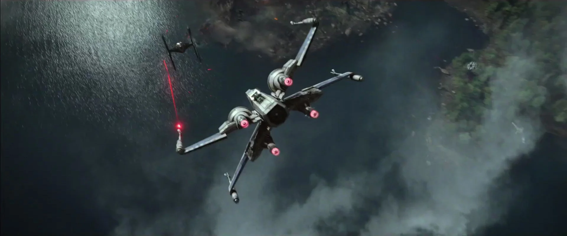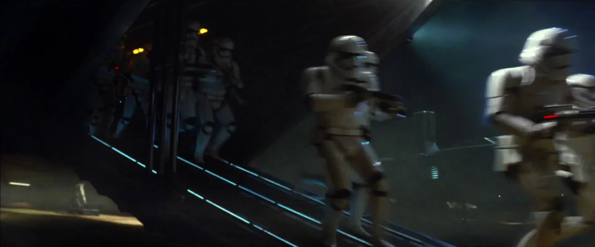 We're treated to several more shots of dogfighting, and stormtroopers charging off a shuttle.
