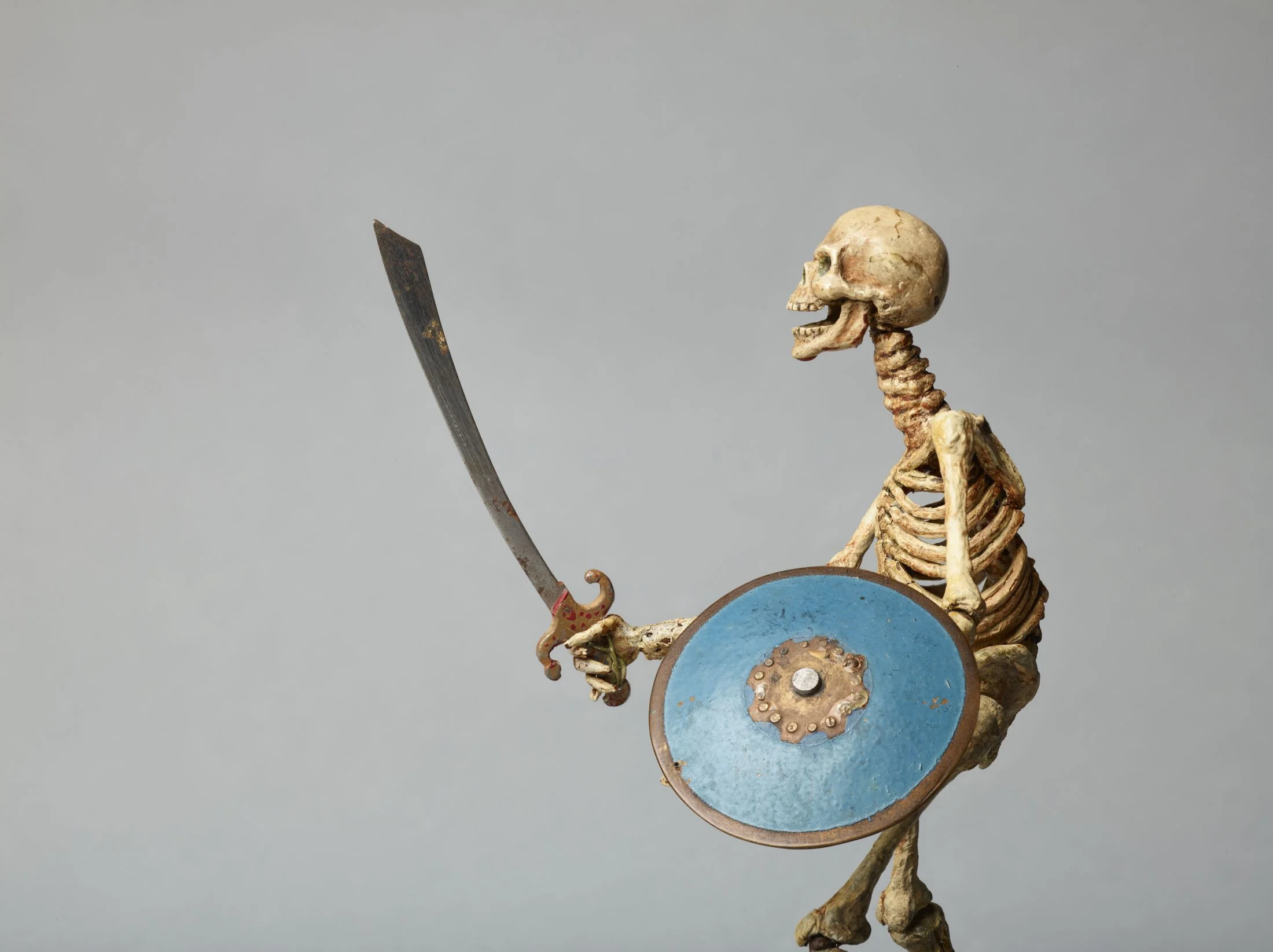 Model of Skeleton from Jason and the Argonauts, c.1961 by Ray Harryhausen (1920-2013). Mounted on wooden base. Collection: The Ray and Diana Harryhausen Foundation (Charity No. SC001419) © The Ray and Diana Harryhausen Foundation Photography: Sam Drake (National Galleries of Scotland)