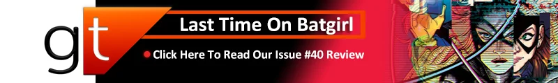 Issue #41 centers mainly on the new Batman and Barbara's relationship with him. Also of note is Cameron Stewart and Brenden Fletcher's use of what is traditionally a Superman villain in Livewire. She's a much better fit here, and flows seamlessly with the look and feel of Babs' world. It doesn't hurt that the art of Babs Tarr just brings such a frenetic energy to the proceedings. Granted, she could draw an infographic on the inner workings of the IRS and I would love it, but her style just works so well here.