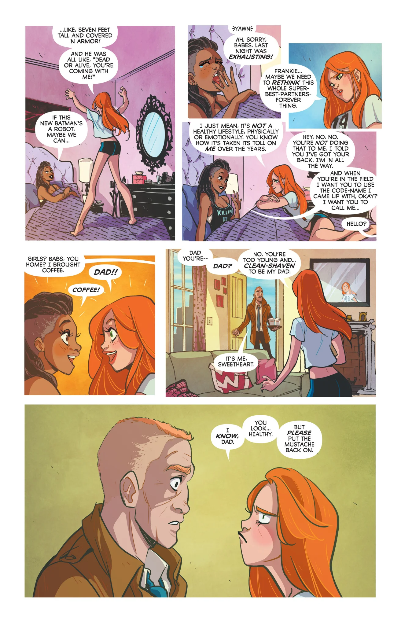 Also on display is the often mentioned but rarely focused on relationship with Barbara's dad, James Gordon. In the current bat books, James is wearing the cape and cowl. While he is now inhabiting the suit, he still isn't privy to everything Bruce knew, including the identities of his team.