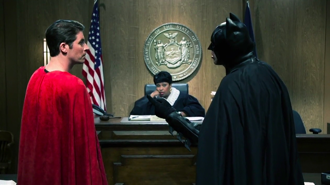 His latest gag is a fake trailer for Batman v Superman: Dawn of Justice, and it takes the concept of "justice" pretty literally since the two title heroes battle out their differences in a small claims court. Check it out below: