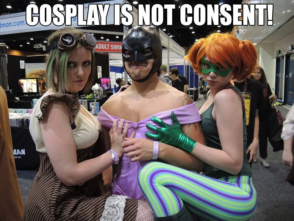 I am not going to go into a whole Women's Studies 101 rant about cross-gender cosplay, but generally, it's cool for a girl to dress as a male character, less cool for a boy to dress as a female character, and that is sort of lame. Which is why I love these photos from Sunday Cosplay, because no one is a bigger badass than Batman. Check out all the pics and have fun imagining Batman sewing princess dresses to recharge after a long day of fighting crime. Or better yet, imagine him on a fitting pedestal while Alfred adjusts his hem.