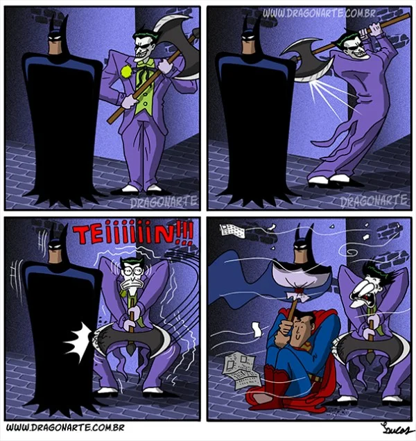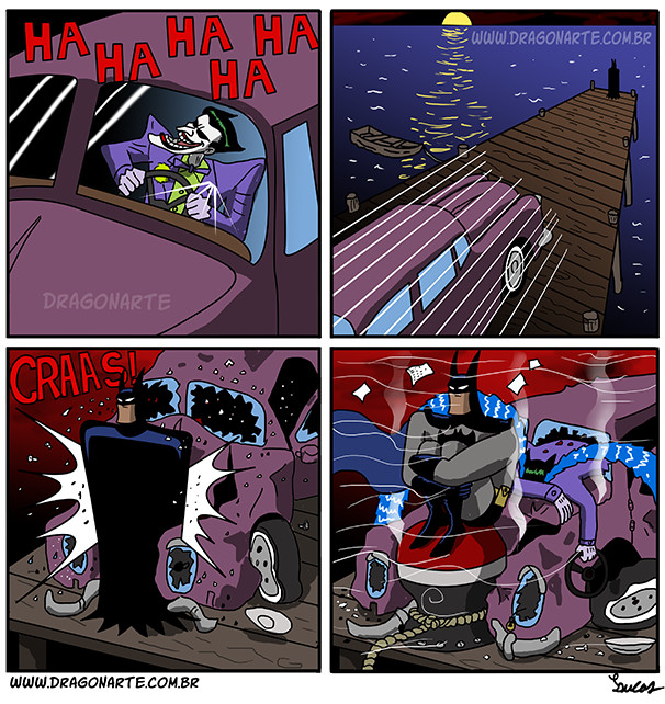 Here's an amusing series of comic strips by Dragonarte Comics that show that Batman is always ready for the joker in the most hilarious ways. It seems to me like Batman is the real Joker here because he's out-joking the Joker!