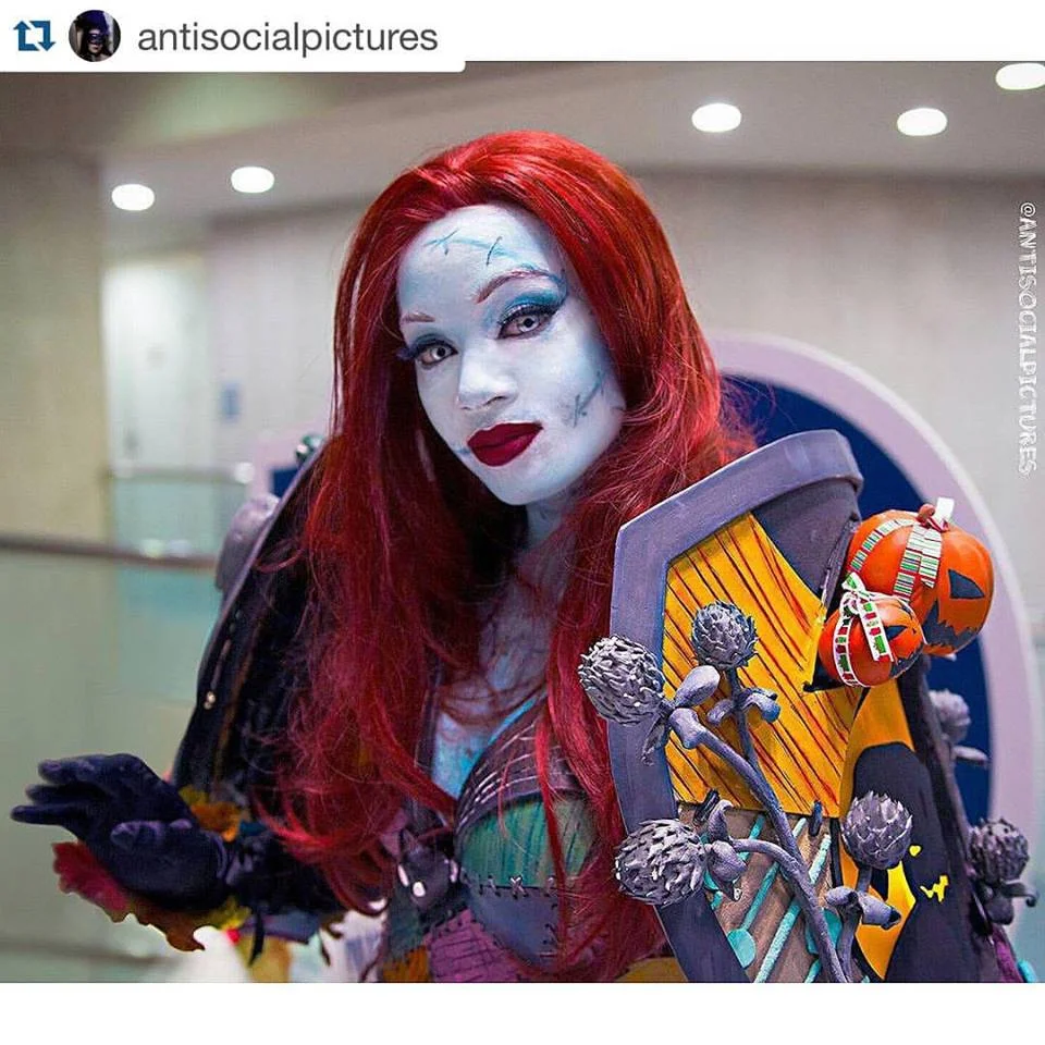 This is one badass original cosplay for The Nightmare Before Christmas. This is Battle Sally, and it was created by the talented Maweezy Cosplay. I absolutely love the detail of this costume. The armor and outfit was made using worbla and insulation foam. Every part of that armor includes elements from the classic Henry Selick film and the bold cross stitching really ties the whole costume together. This is easily the best Nightmare Before Christmas cosplay that I've seen.