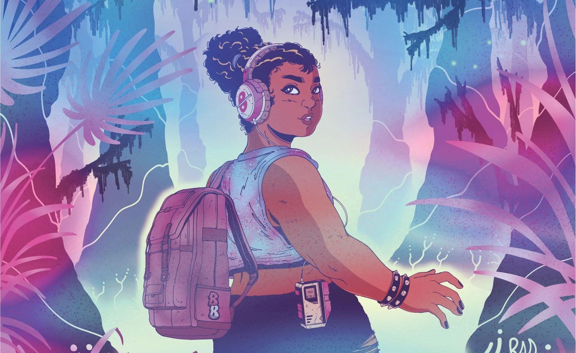 b.b. free is the trippy wild adventure road trip I always wanted to go on as a kid, with a post-climate-change-America twist. Chubby, nerdy, teen me daydreamed about heading out into the world with a super cool best friend and doing whatever we wanted. Usually on motorcycles, with magical powers, and no parents to mess with our fun. With b.b. free, I get to do all that and more, with one of the best artists on the planet, Royal Dunlap. b.b. free is a bouncy love letter to queer kids everywhere, especially the chubby Puerto Rican ones.
