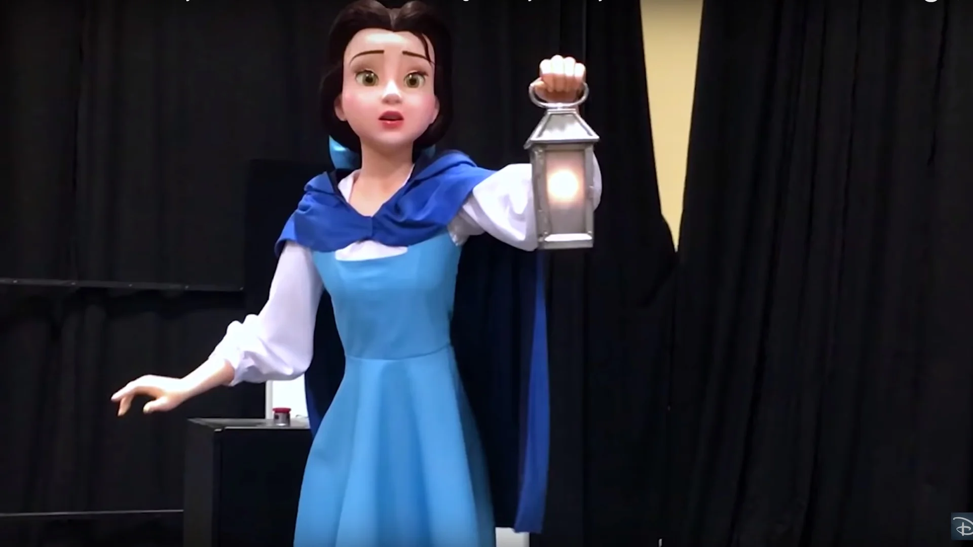 That video features some of the animatronics of the cartoon characters, like Belle, and it’s stunning! These animatronics are living cartoons! It’s like the cartoons jumped right out of the movie and into real life! I’ve never seen animatronic characters like this before!