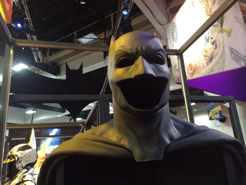 The cape and cowl that Ben Affleck will be wearing in Batman v Superman: Dawn of Justice is currently on display at San Diego Comic-Con. One of the first things I realized upon seeing the costume was, "Well, Batman won't be able to turn his head again." That's ok though because the suit really does look freakin' spectacular. I'd wear it… everyday!