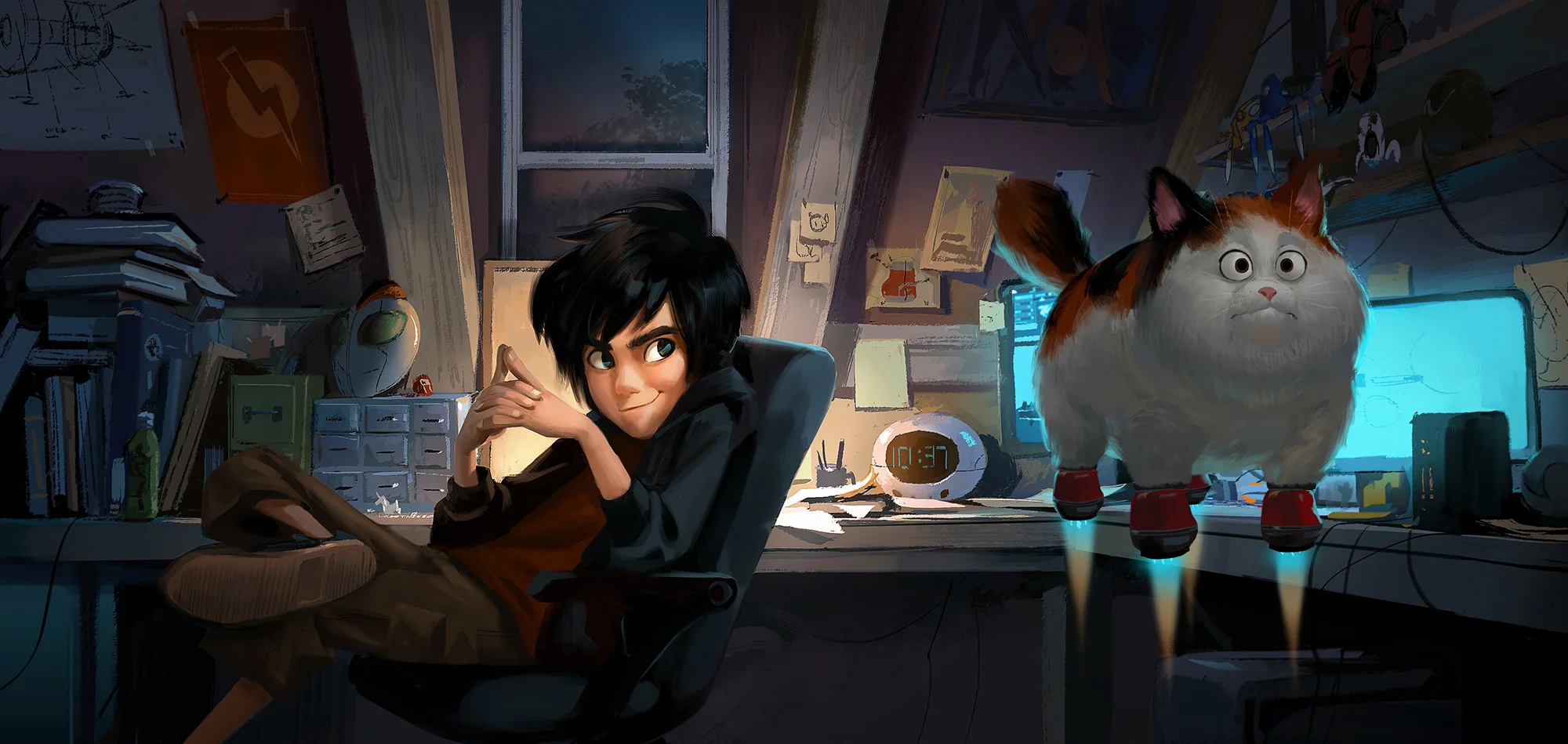 Rocket Cat was the best thing that didn't make it into the final cut of Disney's Big Hero 6. Before the movie hit the big screen it went through a lot of different changes. One of the characters that the creative team were looking to include early on in the development process was Rocket Cat. Even though everyone on the team loved it, and the cat would have been a great character, they just couldn't really fit it into the story, so they let it go. But above you'll find a piece of concept art that was created by Mingjue Helen Chen featuring Rocket Cat in action.