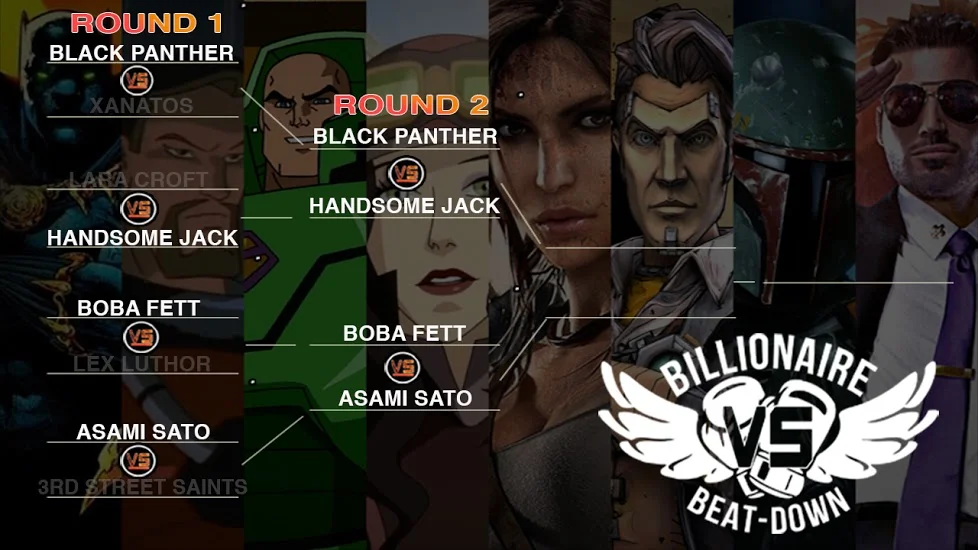 There were some seriously close calls. Boba Fett vs Lex Luthor is the most popular video of the series so far, and that episode also received the most votes. Boba Fett edged out Lex Luthor by one single vote. It was insane! Asami vs The Leader of the Third Street Saints was not close at all. Asami supporters showed up and she destroyed the Leader of the Third Street Saints. Lara Croft vs Handsome Jack was also very close, though in the end, votes were counted and Croft was not able to respawn this time. Handsome Jack won by 9 votes. Xanatos vs Black Panther was also heavily voted for. In the end, Xanatos brought as much badass as he could to the fight. Was it enough? Nope. The voters came out for Black Panther, and he won by 35 votes.