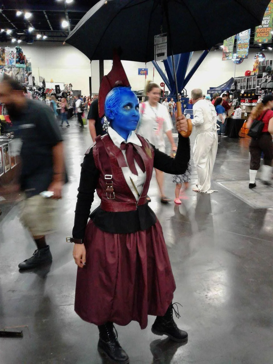 I absolutely love this mashup cosplay of Marry Poppins and Yondu by cosplayer Cindy Salvus Artistry. The cosplay was obviously inspired by the scene in Guardians of the Galaxy Vol. 2 when Star-Lord tells Yondu he looks like Mary Poppins and Yondu yells out "I'm Mary Poppins ya'll!". This cosplay just awesomely brings that visual of Yondu as Mary Poppins to life.