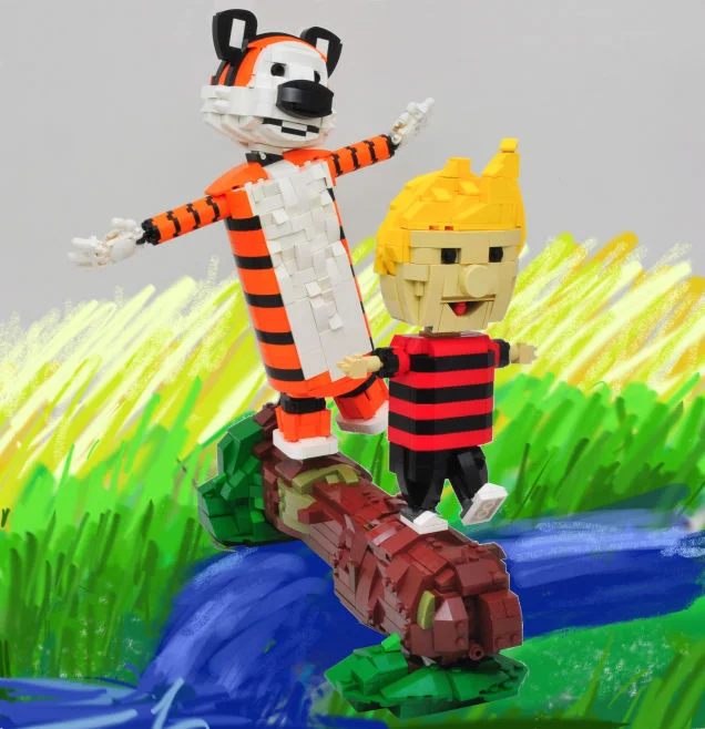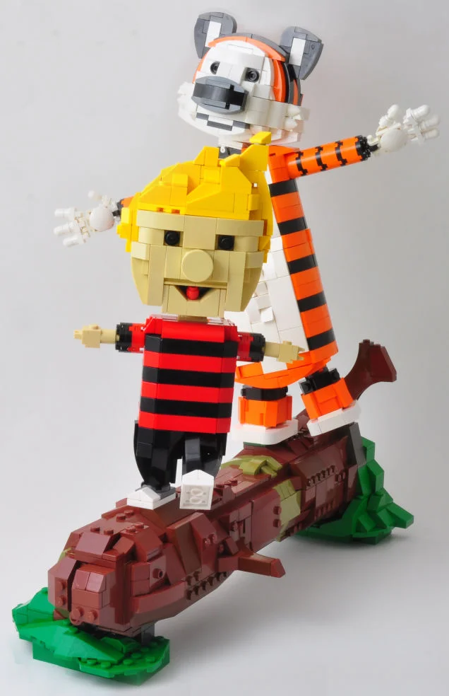 This fantastically feel-good LEGO build of Calvin and Hobbes is a co-creation of Evan and Simon from the brothers brick. It pays wonderful homage to the beloved comic strip by Bill Watterson. I grew up reading the adventures of these characters, and I still enjoy looking back on the comics from time to time, especially when I need a little pick-me-up! See, I don't need drugs, I just need Calvin and Hobbes.