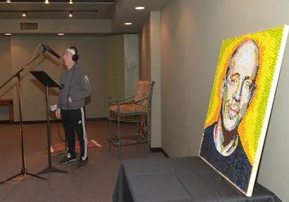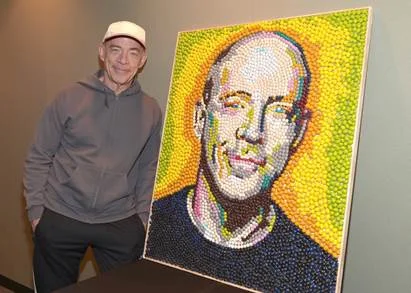In honor of Simmons' (well-deserved) Oscar win at last night's ceremony and to celebrate the fact that he's been the voice of the yellow "spokescandy" for almost 20 years, M&M's sent over a few pictures of Simmons recording material as well as a portrait of him made out of M&M's. Pretty cool, right?