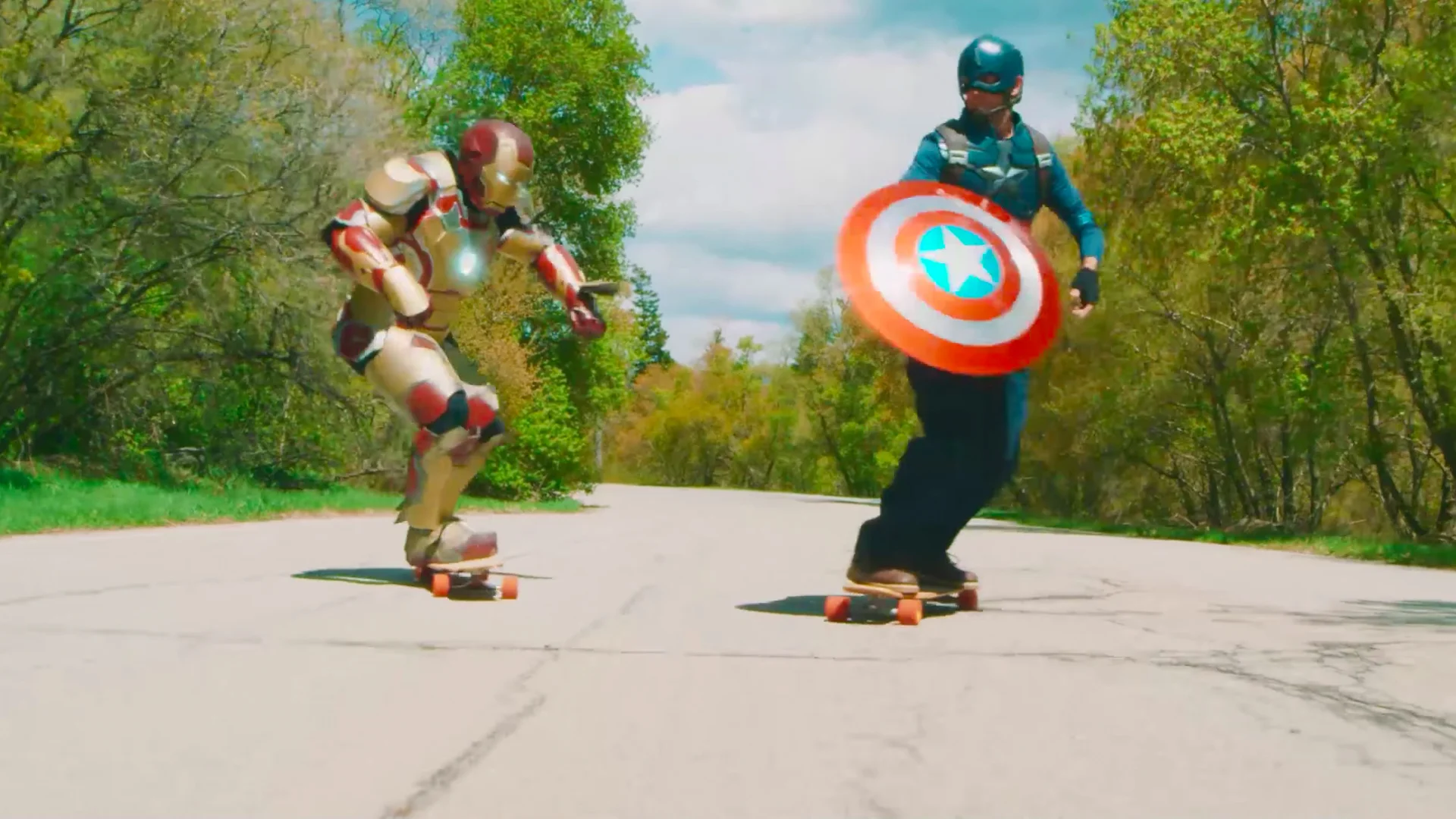 Cap and Iron Man Battle on Longboards in Parody Video CAPTAIN AMERICA: CIVIL BOARDS