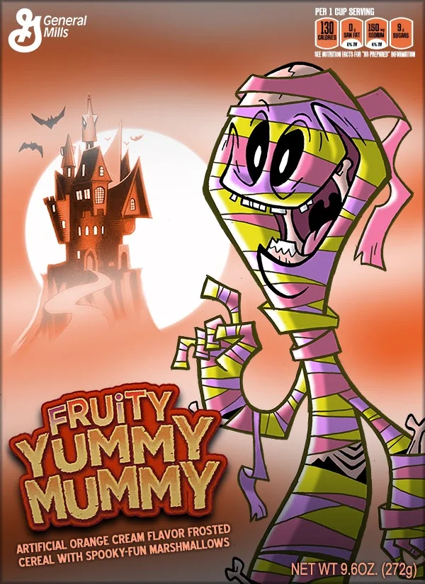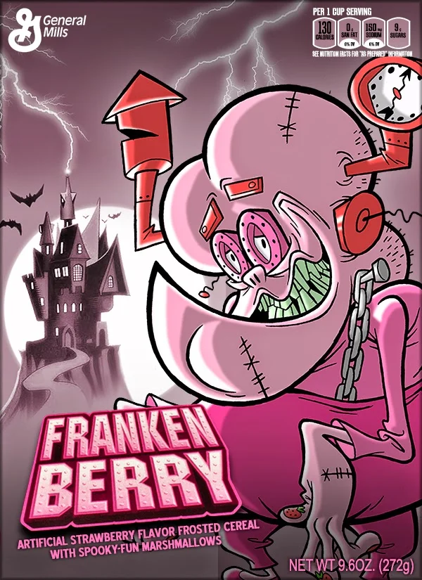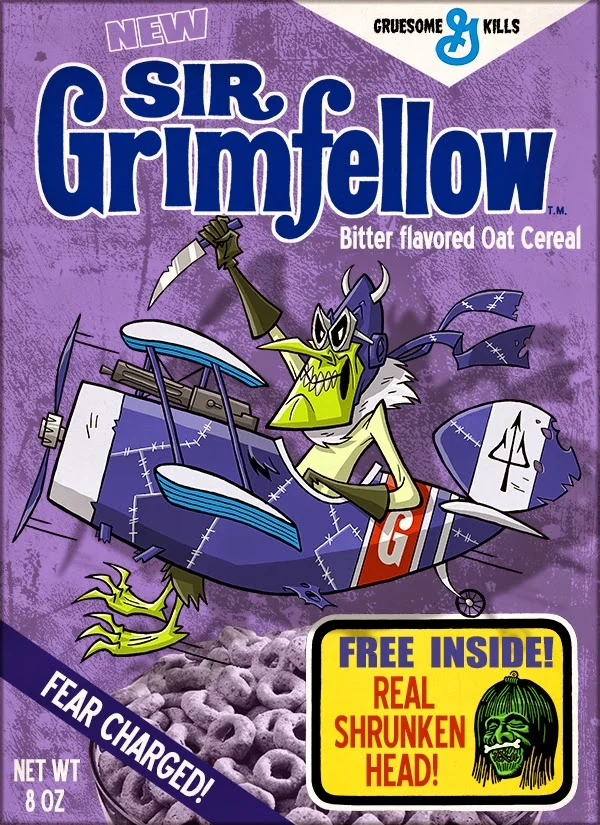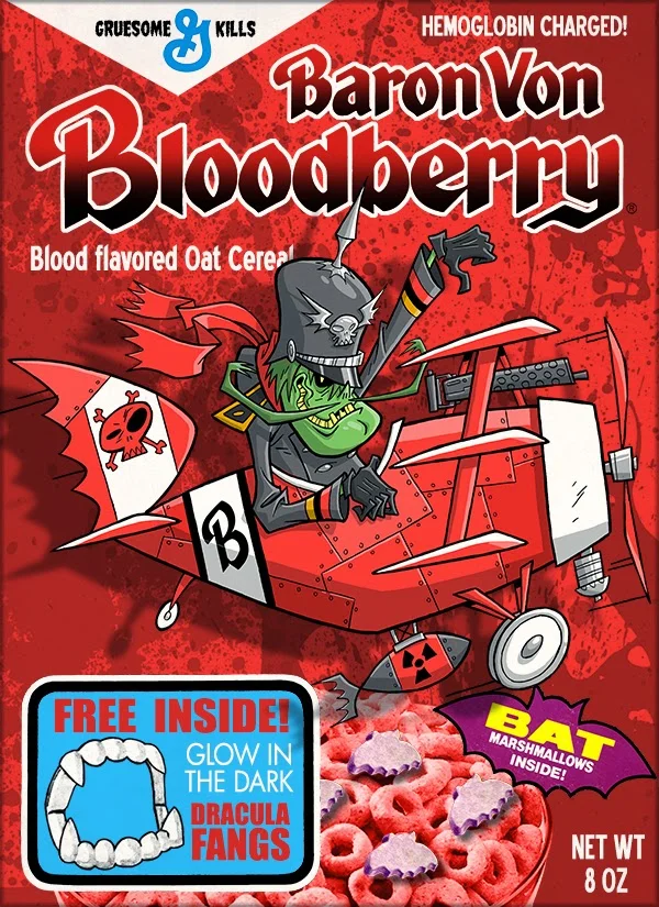 Every Halloween I load up on boxes of General Mills' classic monster cereals such as Count Chocula, Boo Berry, and Franken Berry. To celebrate the holiday this year, artist Phil Postma has redesigned these classic characters in a set of art that he created that also features Frute Brute, Fruity Tummy Mummy, Baron Von Bloodberry, and Sir Grimfellow.