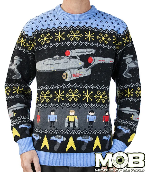 I wish I would have seen these before I went to an ugly Christmas sweater party that I attended. These geek culture ugly Christmas sweaters are mint. They come from MOB, and the line-up of sweaters includes The Twilight Zone, Star Trek, Bill & Ted, and Elvira. If you want to buy any for next year's festivities, click here. They're $85, but they might go on sale after Christmas.