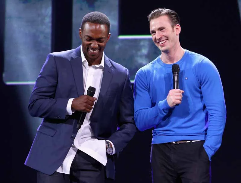Chris Evans and Anthony Mackie were at the event to talk about the project, which is currently in production. During a couple of interviews the two discuss Bucky Barnes/The Winter Soldier's involvement in the story and their relationship with him. Mackie says: